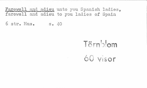 //// Farewell and adieu unto j^ou Spanish ladies, farewell and adieu to you ladies of Spain //// 6 str. Hus. s. 40 //// Törnblom //// 6G visor ////