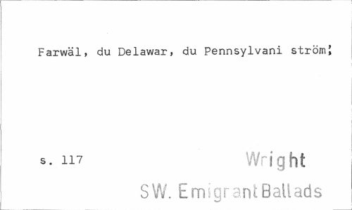 //// Farwäl, du Delawar, du Pennsylvani strömJ //// s. n7 Wright //// SW. Emigrant Ballads ////