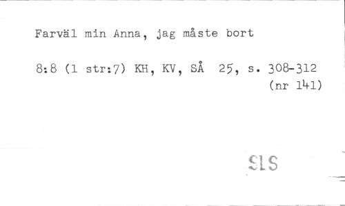 //// Farväl min Anna, jag måste bort //// 8:8 (1 str:7) KH, KV, SÅ 25, s. 308-312 //// (nr Hfl) //// £LS ////