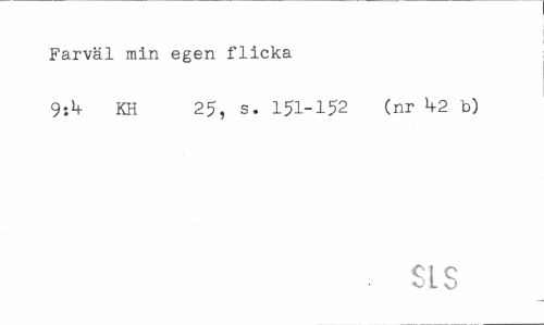 //// Farväl min egen flicka //// 9:*+ KH 25, s. 151-152 (nr b2 b) //// . SLS ////