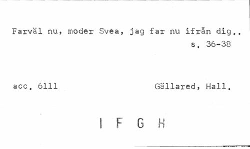 //// Farväl nu, moder Svea, jag far nu ifrån dig,. //// s. 36-38 //// acc. 6111 Gällared, Hall. //// IF G H ////