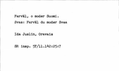 //// Farväl, o moder Suomi. Svas: Farväl du moder Svea //// Ida Juslin, Oravais //// SR insp. 57/11.142:25:7 ////