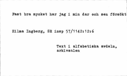 //// Fast bra mycket har jag i min dar och sen försökt //// Hilma Ingberg, SE insp 57/1142:12:6 //// Text i alfabetiska avdeln, arkivsalen ////
