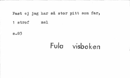//// Fast ej jag har så stor pitt som far, 1 strof mel //// s.83 //// Fula visboken ////