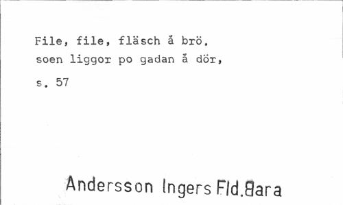 //// File, file, fläsch a brö. soen liggox po gadan a dör, //// s. 57 //// Andersson (ngers Fld„9ara ////