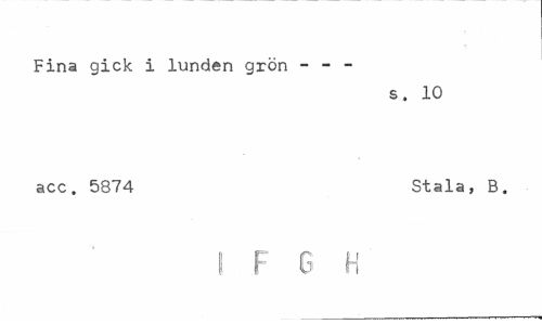 //// Fina gick i lunden grön - - - //// s. 10 //// acc, 5874 Stala, B. //// I F 6 H ////