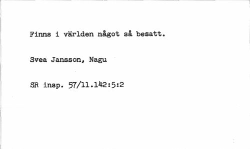 //// Finns i världen något så besatt. Svea Jansson, Nagu SR insp. 57/11.1^2:5:2 ////