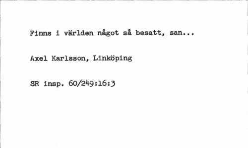 //// Finns i världen något så besatt, san... Axel Karlsson, Linköping SR insp. 60/249:160 ////