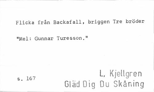 //// Flicka från Backafall, briggen Tre bröder "Mel: Gunnar Turesson." //// s. 167 L. Kjellgren //// Gläd Dig Du Skåning ////