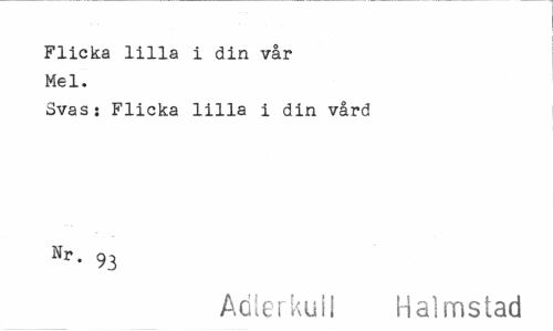 //// Flicka lilla i din vår Mel. //// Svas: Flicka lilla i din vård Nr. 93 //// Åderkull Halmstad ////