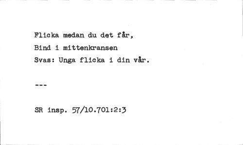 //// Flicka medan du det får, Bind i mittenkransen Svas: Unga flicka i din vår. //// SR insp. 57/10.701:2:3 ////