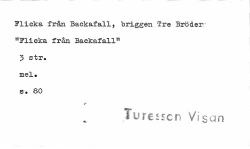 //// Flicka från Backafall, briggen Tre Bröder "Flicka från Backafall" 3 str. mel. s. 80 //// s* //// Tur essen Visan ////