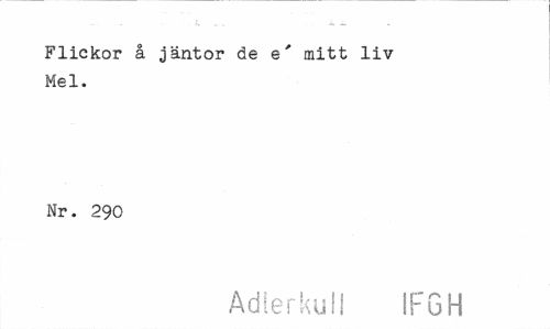 //// Flickor å jäntor de e' mitt liv Mel. //// Nr. 290 //// Adlerkull IFGH ////