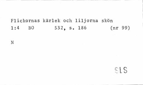 //// Flickornas kärlek och liljorna skön 1:4 BO 532, s. 186 (nr 99) //// N //// SIS ////