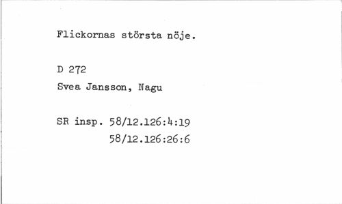 //// Flickornas största nöje. D 272 //// Svea Jansson, Nagu //// SR insp. 58/12.126-.U: 19 58/12.126:26:6 ////