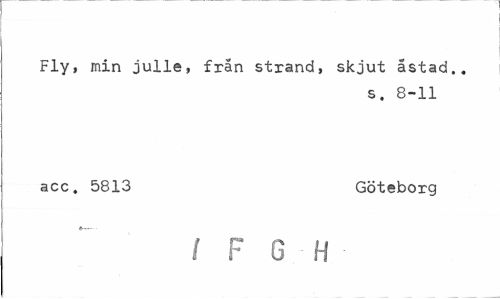 //// Fly, min julle, från strand, skjut åstad.. //// s. 8-11 //// acc. 5813 Göteborg //// / F G H ////