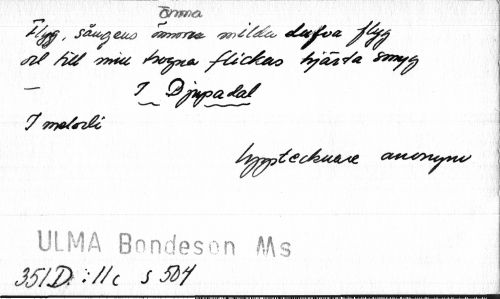 //// ^ öwa //// /fe' f&tzé&o //// — //// ULM A Bondeson AAs //// -//c JM? ////