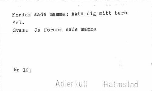 //// .St. * * ' • //// Fordom sade mamma: Åkta dig mitt barn Mel. //// Svas: Ja fordom sade mamma Nr 161 //// Acierkuli Halmstad ////