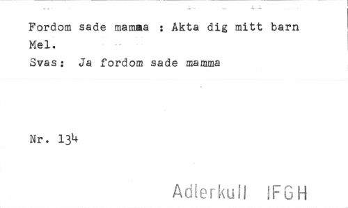 //// Fordom sade mamaa : Akta dig mitt barn Mel. //// Svas: Ja fordom sade mamma Nr. 13*f //// Adlerkuil IFGH ////