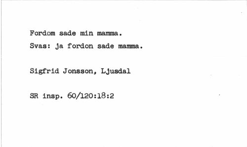 //// Pordora sade min mamma. Svas: ja fordon sade mamma. //// Sigfrid Jonsson, Ljusdal //// SR insp. 60/120:18:2 ////