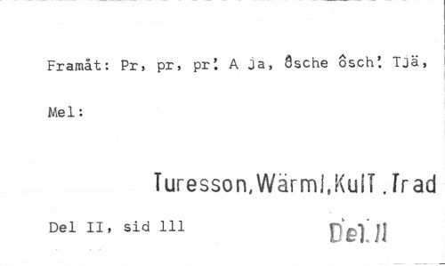 //// Framåt: Pr, pr, pr'. A ja, Ösche osch'. Tja, Mel: //// Turesson, Wärmi.KulT Jrad //// Del II, sid 111 pC] il ////