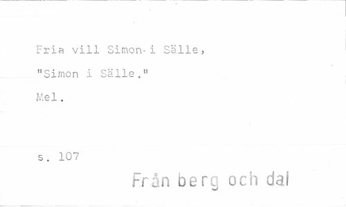 //// Fria vill Simon.i Sälle, "Simon i Sälle." Mel. //// s. 107 //// Från Derg och dal ////