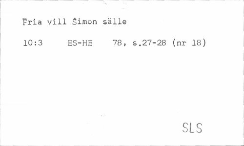 //// Fria vill Simon sälle //// 10:3 ES-HE 78, s.27-28 (nr 18) //// SLS ////