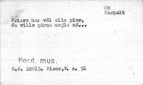 //// Sk -Fatalt //// Friare iaai väl alla pier, Ja ville gärna mo^la mä.• • //// Mord. mus. //// S.U. 22015, Visor t V* e. 91 //// , t Iv ////