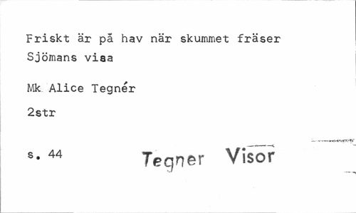 //// Friskt är på hav när skummet fräser Sjömans viaa //// Mk Alice Tegnér 2str //// s- 44 Tegnér Visor ////