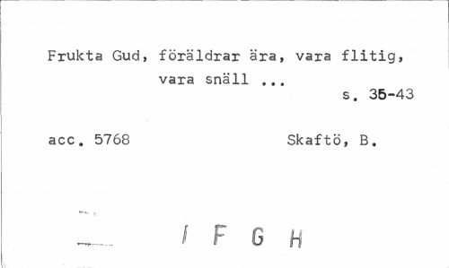 //// Frukta Gud, föräldrar ära, vara flitig, vara snäll ... //// s. 35-43 //// acc. 5768 Skaftö, B. //// / F G h ////
