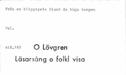 //// Från en klippspets bland de höga bergen Mel. //// sid. 189 O Lövgren //// Läsarsång o folkl visa ////