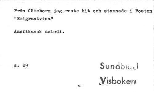 //// Från Göteborg jag reste hit och stannade i Boston "Emigrantvisa" //// Amerikansk melodi. //// s- 29 SundbiuJ //// Yisbokem ////
