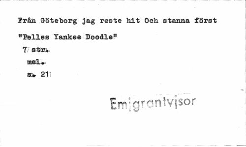 //// ]?rån G-öteborg jag reste hit Och stanna först //// "Pelles Yankee Dbodle" 77 str k mel». 211 //// Frvarantvisor ////