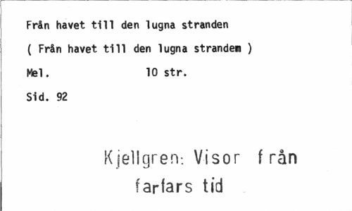 //// Från havet till den lugna stranden ( Från havet till den lugna stranden ) Mel. 10 str. //// Sid. 92 //// Kjellgren-, Visor från farfars tid ////