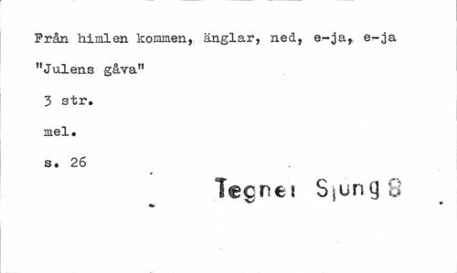 //// Från himlen kommen, änglar, ned, e-ja, e-ja "Julens gåva" 3 str, mel. s. 26 //// lecnei Sjung 8 //// * ////