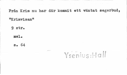 //// Från Krim nu har där kommit ett väntat segerbud, "Krimvisan" 9 str. mel. s. 64 //// Ysemus:Haff ////