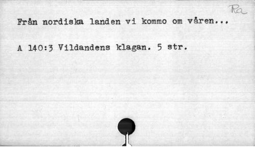 //// Från nordiska landen vi kommo om våren... //// A 140:3 Vildandens klagan. 5 str. //// ...f _ ////