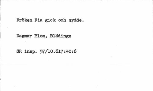 //// Fröken Fia gick och sydde. Dagmar Blom, Blädinge SR insp. 57/10.617:40:6 ////