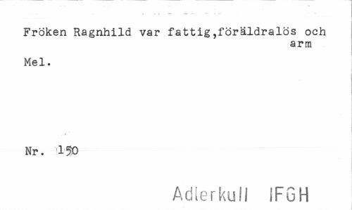 //// Fröken Ragnhild var fattig,föräldralös och //// arm //// Mel. Nr. 150 //// Adlerkull IFGH ////