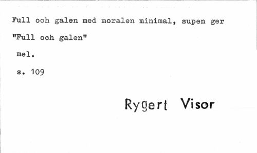 //// Full och galen med moralen minimal, supen ger "Full och galen" mel. s. 109 //// Rygert Visor ////