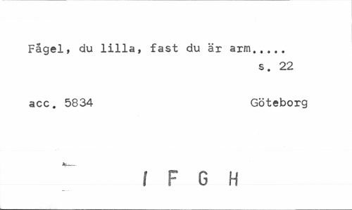 //// Fågel, du lilla, fast du är arm... //// s. 22 //// acc. 5834 Göteborg //// I F G H ////