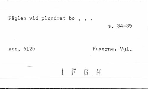 //// Fåglen vid plundrat bo , . . //// s. 34-35 //// acc. 6125 Fuxerna, Vgl. //// f P G H ////