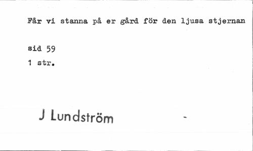 //// Får vi stanna på er gård för den ljusa stjernan //// sid 59 1 str. //// J Lundström ////