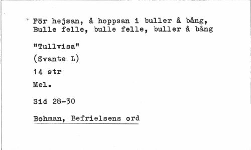 //// ' För hejsan, å hoppsan i buller å bång, Bulle felle, bulle felle, buller å bång //// "Tullvisa" (Svante L) 1 4 str Mel. //// Sid 28-30 //// Bohman, Befrielsens ord ////