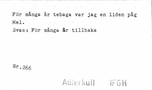 //// För många år tebaga var jag en liden påg Mel. //// Svas: För många år tillbaka Nr.266 //// Adlerkull IFGH ////