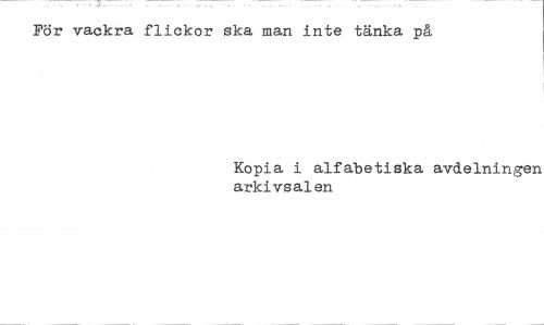 //// För vackra flickor ska man inte tänka på //// Kopia i alfabetiska avdelningen arkivsalen ////