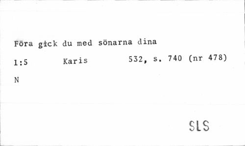//// Föra gick du med sönarna dina //// 1:5 Karis 532, s. 740 (nr 478) //// N //// SLS ////