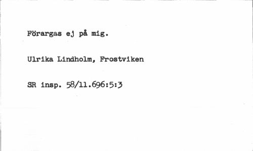 //// Förargas ej på mig. Ulrika Lindholm, Frostviken SR insp. 58/11.696:5:3 ////