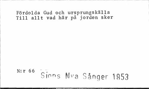 //// Fördolda Gud och ursprungskälla Till allt vad här på jorden sker //// N:r 66 - . //// Sinns fjva Sånger 1R53 ////