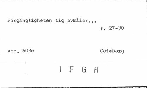 //// Förgängligheten sig avmålar... //// s. 27-30 //// acc. 6036 Göteborg //// I F G H ////